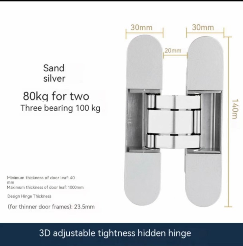 हेवी ड्यूटी इनविजिबल हिंज एक 3 डी-एडजस्टेबल छिपी हुई हिंज है, जिसका अर्थ है कि इसे तीन आयामों में समायोजित किया जा सकता है, जिससे आसान स्थापना और अनुकूलन की अनुमति मिलती है।हिंज उच्च गुणवत्ता वाली सामग्री से बना है120 किलोग्राम के अधिकतम भार के साथ, यह हिंज आसानी से सबसे भारी दरवाजों को भी सहन कर सकता है।